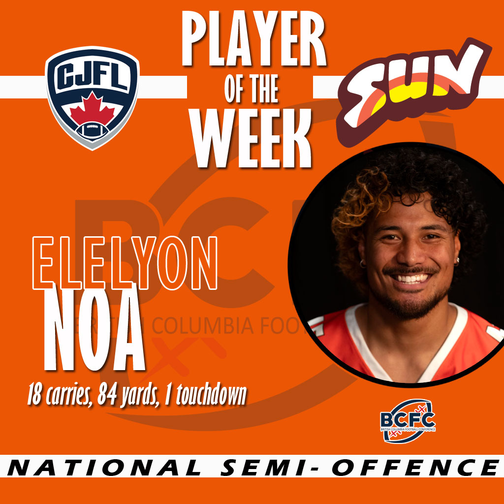 In big games you need your best players to be at their best and Elelyon Noa was that for the Okanagan Sun as they went into Regina to win the National Semi-Final. Noa carried the ball 18 times, picking up 84 very difficult yards and scored a fourth quarter touchdown from 17-yards out to seal the win for his club. He also tossed a two-point conversation pass after his touchdown.