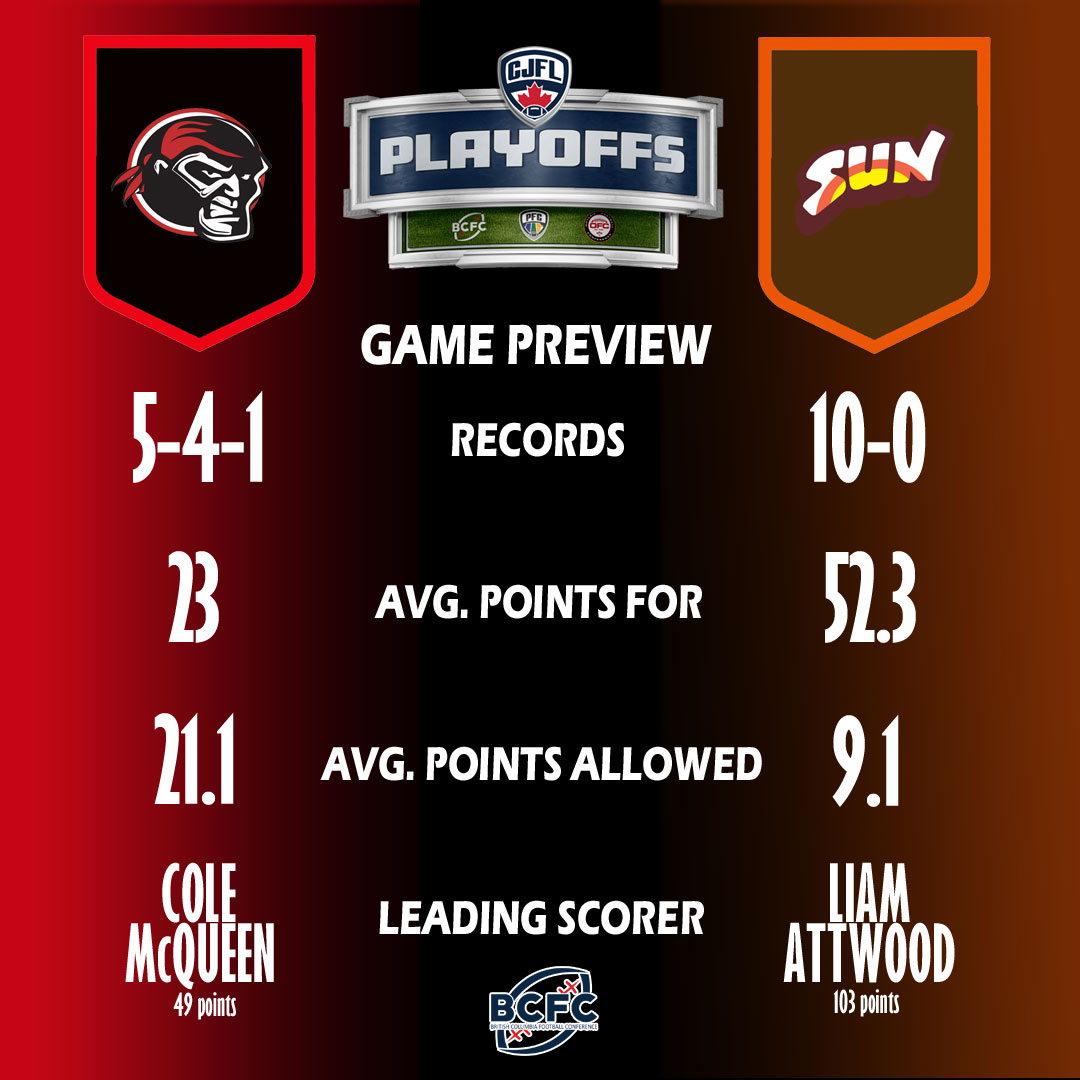 The last time these two met in the playoffs was the 2021 semifinal which the Sun won 33-0. The winner on Saturday advances to the BC Cullen Cup Championship game next week.