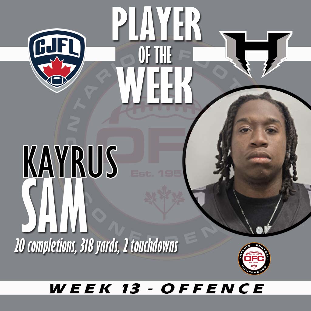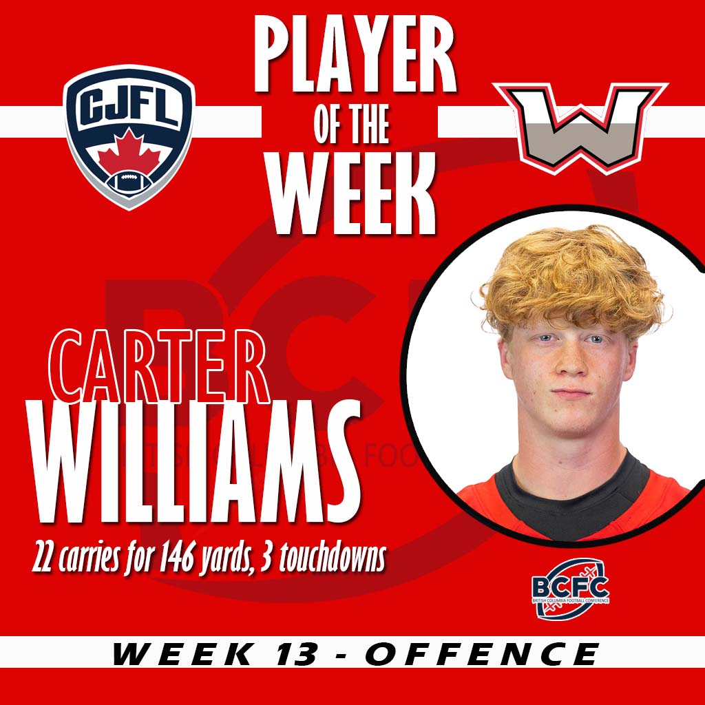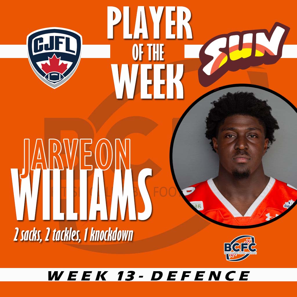 The CJFL in conjunction with the three Conferences is pleased to announce the Players of the Week following an exciting weekend of playoff football and regular season finales.