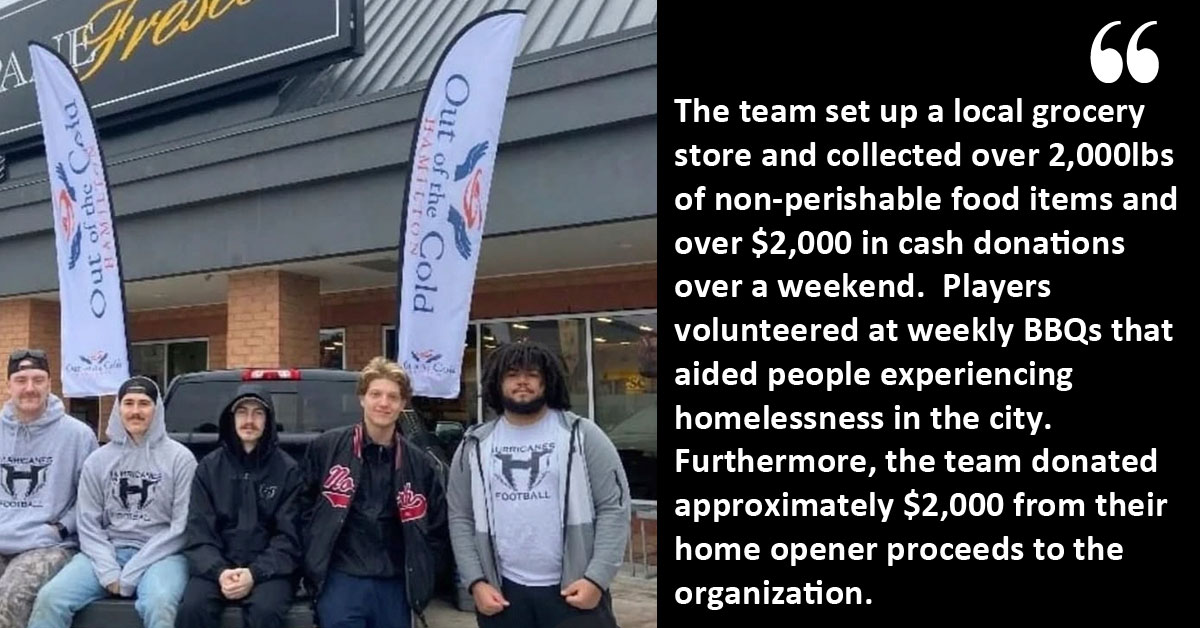 The Hamilton Hurricanes took a major step in the right direction on the field this season getting back to the Ontario Conference championship game. Impressively this didn’t hinder their incredible community service and have been named the CJFL Rick Smoke Community Service winners for the third consecutive season.